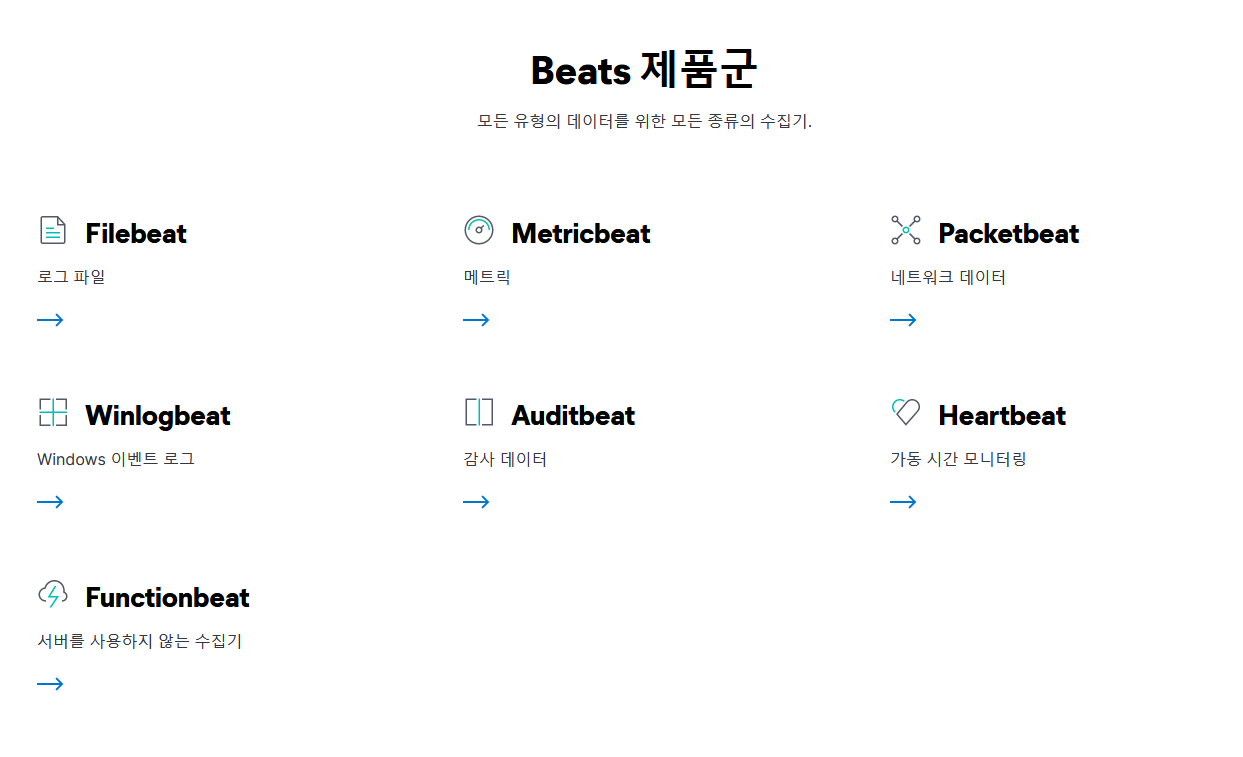 수집할 수 있는 로그의 형태는 파일부터 각종 시스템 정보(Elasticsearch에선 Metric이라 부릅니다) 등이 존재하는데 elastic에선 이와 같은 데이터를 수집할 수 있는 수집기를 무료로 제공하고 있습니다.