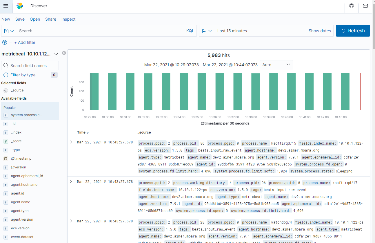 - Discover: 특정 index pattern에 대한 데이터를 조회