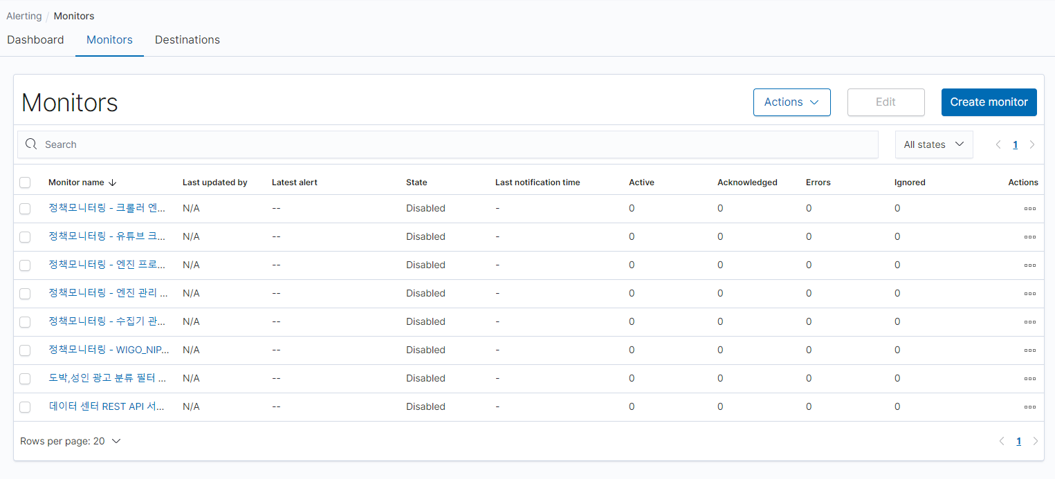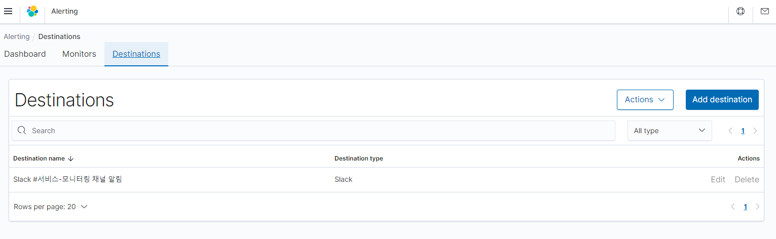 Kibana를 이용하여 알람을 설정하려면 Monitor, Trigger, Destination을 설정해야합니다.