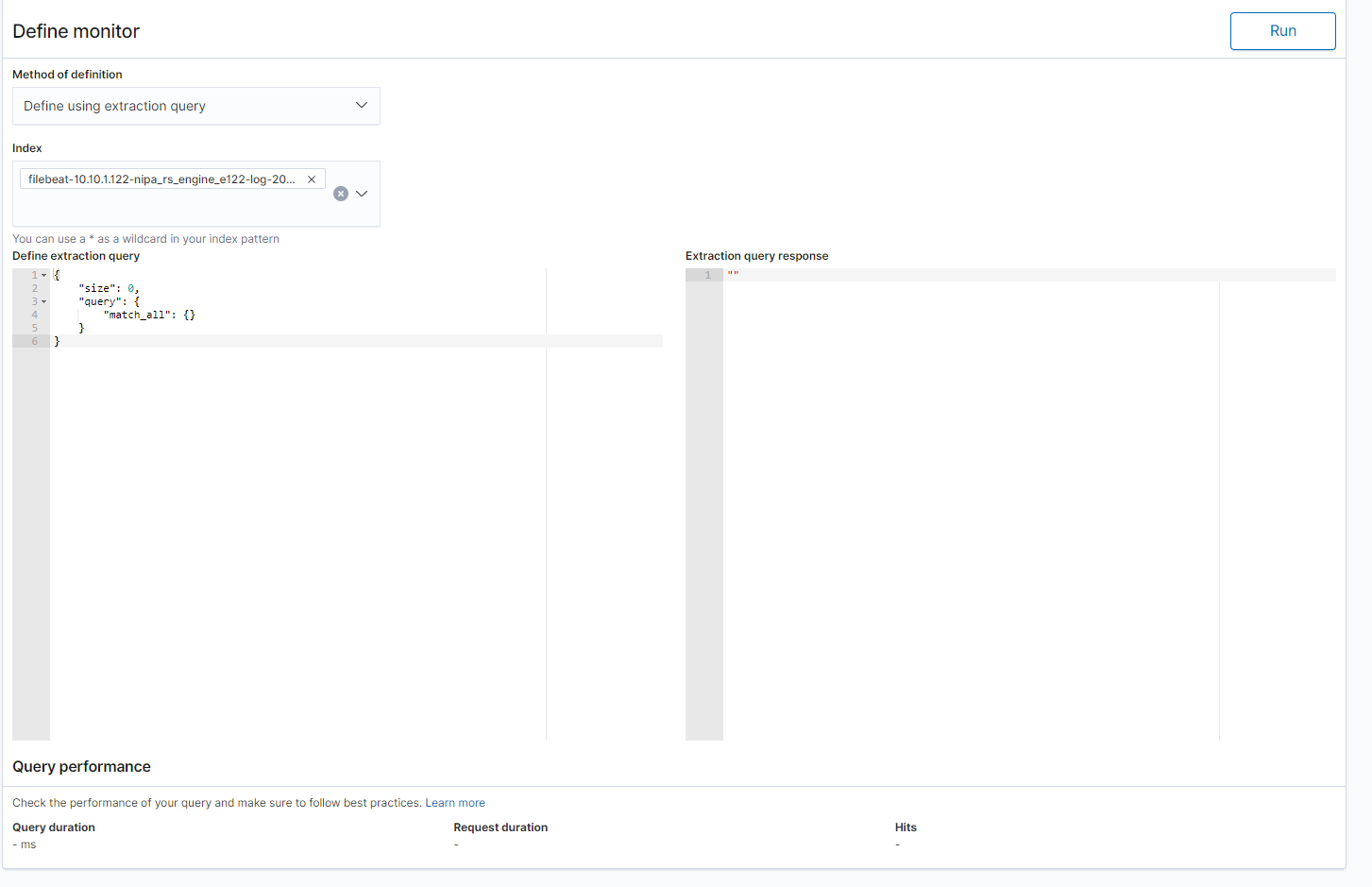 Monitor 이름을 입력하고 Define monitor 항목에서 Method of definition 항목을 선택합니다. 항목에는 2가지가 존재하는데 elastic query를 이용하는 방법과 visual graph을 이용하는 방법이 있습니다.